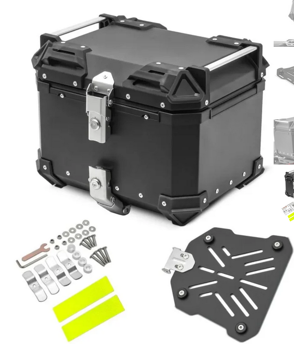 mittelgroß – passend für z.B. einen Helm, inkl. Grundplatte mit Schnell-Klickmechanismus, 2 mm starkes Aluminium Schwarz Matt, wasserdicht, staubdicht, mit Haltereling + Innentasche + Verzurrösen, Schließsystem, B*H*T 35*33*33cm, 35 l Volumen